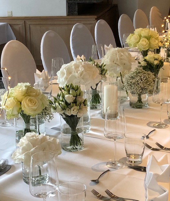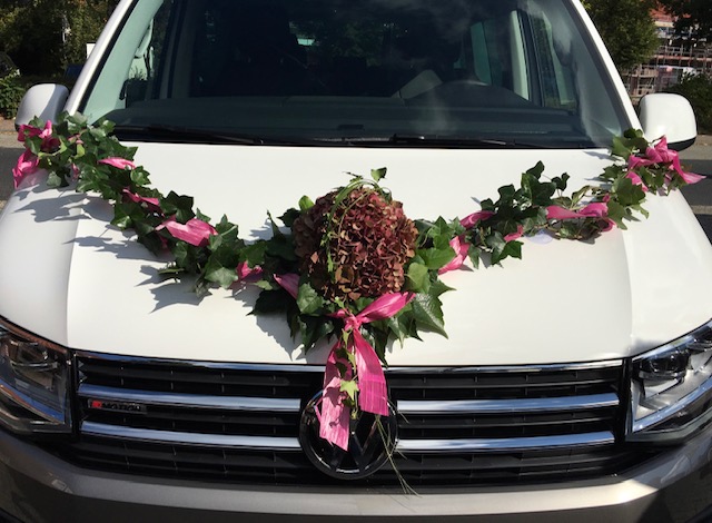 Ein ganz besonderer Tag soll es werden! Wir beraten Sie gerne zum Thema Blumenschmuck – ob Brautstrauß, Autoschmuck, Kirchenschmuck, Saal- und Tischdekoration.
